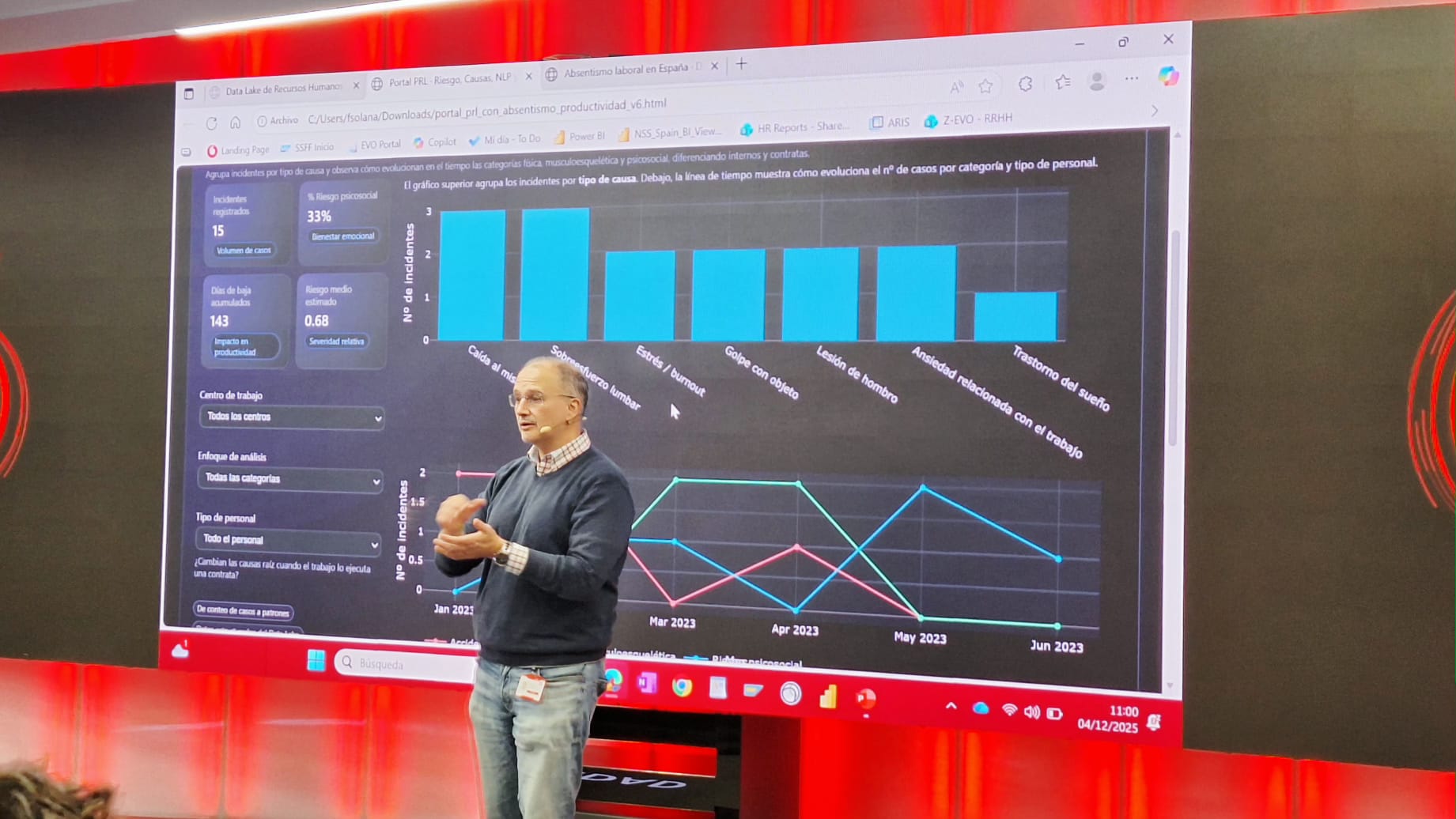 También conocimos las experiencias de Leroy Merlin con Eva Carmona de la Morena y CBRE con Helena Muñoz Mula, quienes demostraron cómo 💡 el wellbeing analytics y el análisis adaptado a nuestro contexto particular pueden ayudarnos a mejorar el absentismo, aumentar la satisfacción… y en definitiva tomar decisiones basadas en la realidad medible.