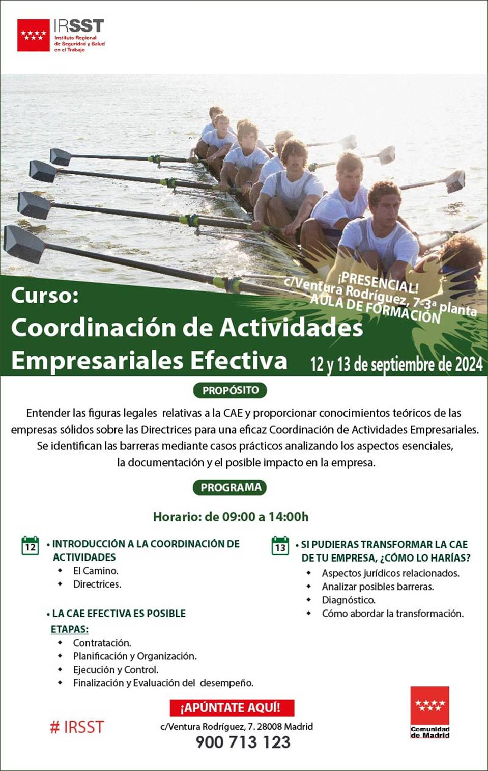 El 12 y 13 de septiembre de 2024, tendrá lugar la primera formación sobre CAE efectiva, resultado de la colaboración entre el Instituto Regional de Seguridad y Salud en el Trabajo (IRSST) de la Comunidad de Madrid, y BeOn* a través de la Línea de Trabajo CAE.