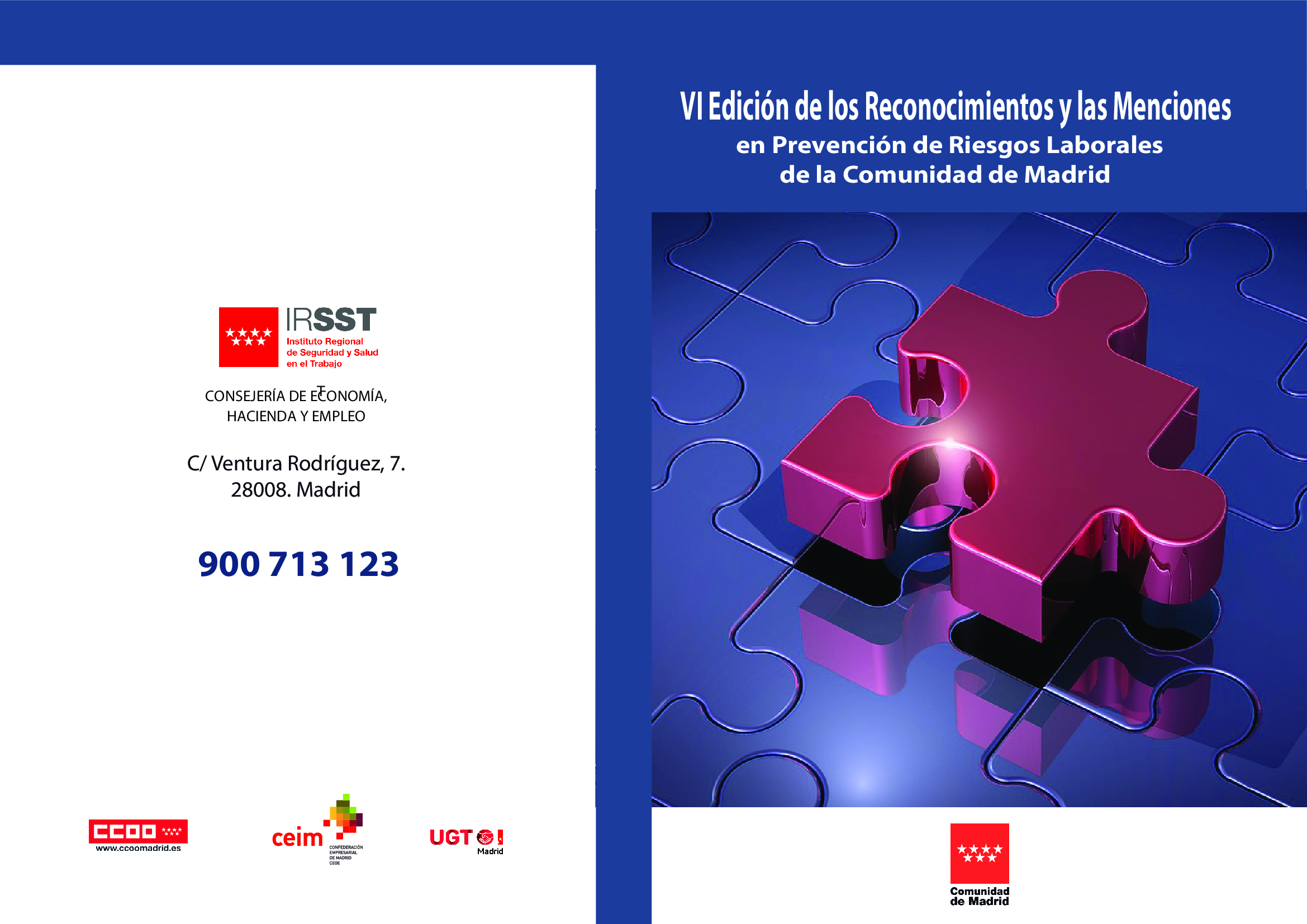 La Comunidad de Madrid, a través del Instituto Regional de Seguridad y Salud en el Trabajo (IRSST), ha decidido otorgar una serie de reconocimientos en materia de prevención de riesgos laborales, con el fin de contribuir a la difusión de la cultura de la prevención y a incentivar las mejores soluciones preventivas adoptadas, para contribuir a la reducción e los daños derivados de las condiciones laborales.