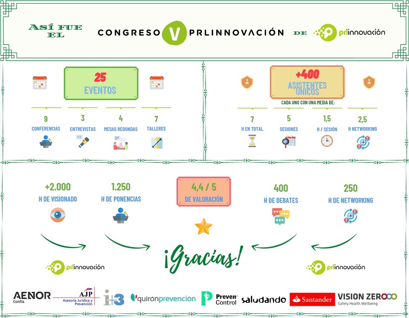 – Ponencias sobre Objetivos de Desarrollo Sostenible, Vision Zero, Safety Differently, Liderazgo en HS, Cultura Preventiva, HOP (Human Organizational Performance) e Internacionalización de la Prevención;