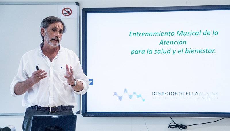 Por último, centrado en la música participó también Ignacio Botella, músico, director de orquesta y Especialista en Neurociencia de la música. Concretamente en el entrenamiento musical de la atención para la reducción de la dispersión mental y el aumento de la productividad.
