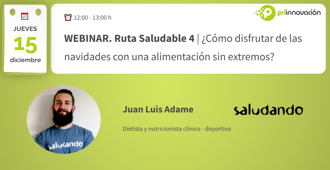Si cada navidad tienes la sensación de cortar el ritmo de los buenos hábitos y después te cuesta recuperarlo, te animamos a participar en este webinar en el que Juan Luis Adame, nutricionista de Saludando, nos dará una particular visión global sobre los habituales excesos de navidad, y además nos dará ejemplos para comer y beber disfrutando de este momento tan social desde la perspectiva saludable tanto física como mental.