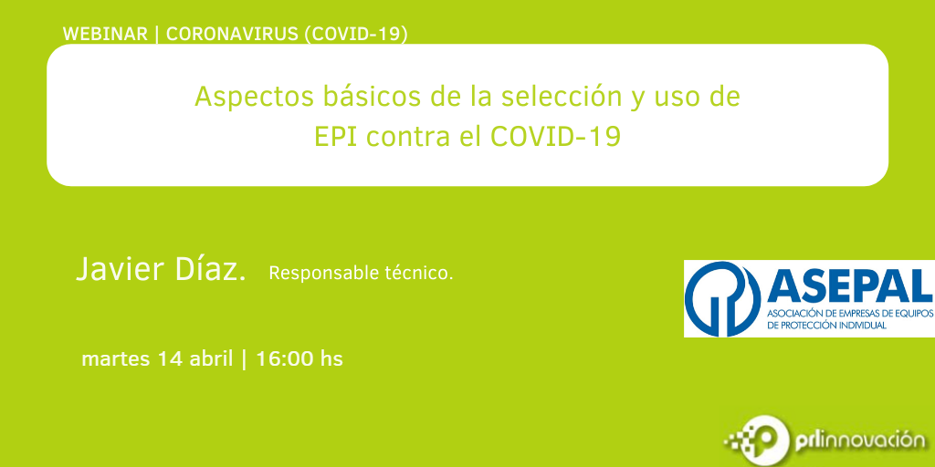 Javier Díaz, Responsable técnico de ASEPAL, tratará los aspectos técnicos y requisitos básicos que deben cumplir los EPI, para la protección de los trabajadores de diversos sectores en un contexto de exposición al virus SARS-CoV-2, además de los fundamentos del uso de estos equipos.