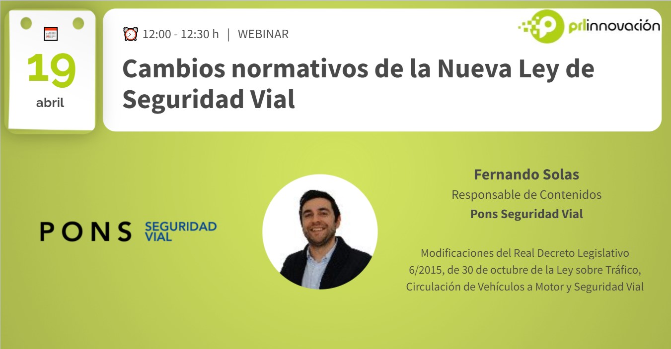 Fernando Solas, Responsable de Contenidos en Pons Seguridad Vial, abordará, de forma sencilla y práctica, qué nuevos cambiós normativos se aplican y cómo afectan al desarrollo de la actividad laboral.