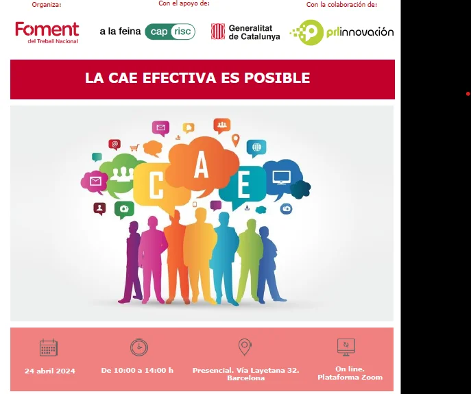 La CAE efectiva es posible. Con el objetivo de contribuir a promover un modelo de aplicación efectivo de la gestión de la Coordinación de Actividades Empresariales (CAE), Foment del Treball organiza una jornada con la colaboración de BeOn* y la participación del INSST y el IRSST para mostrar cómo lograr ser más eficaces garantizando la seguridad […]