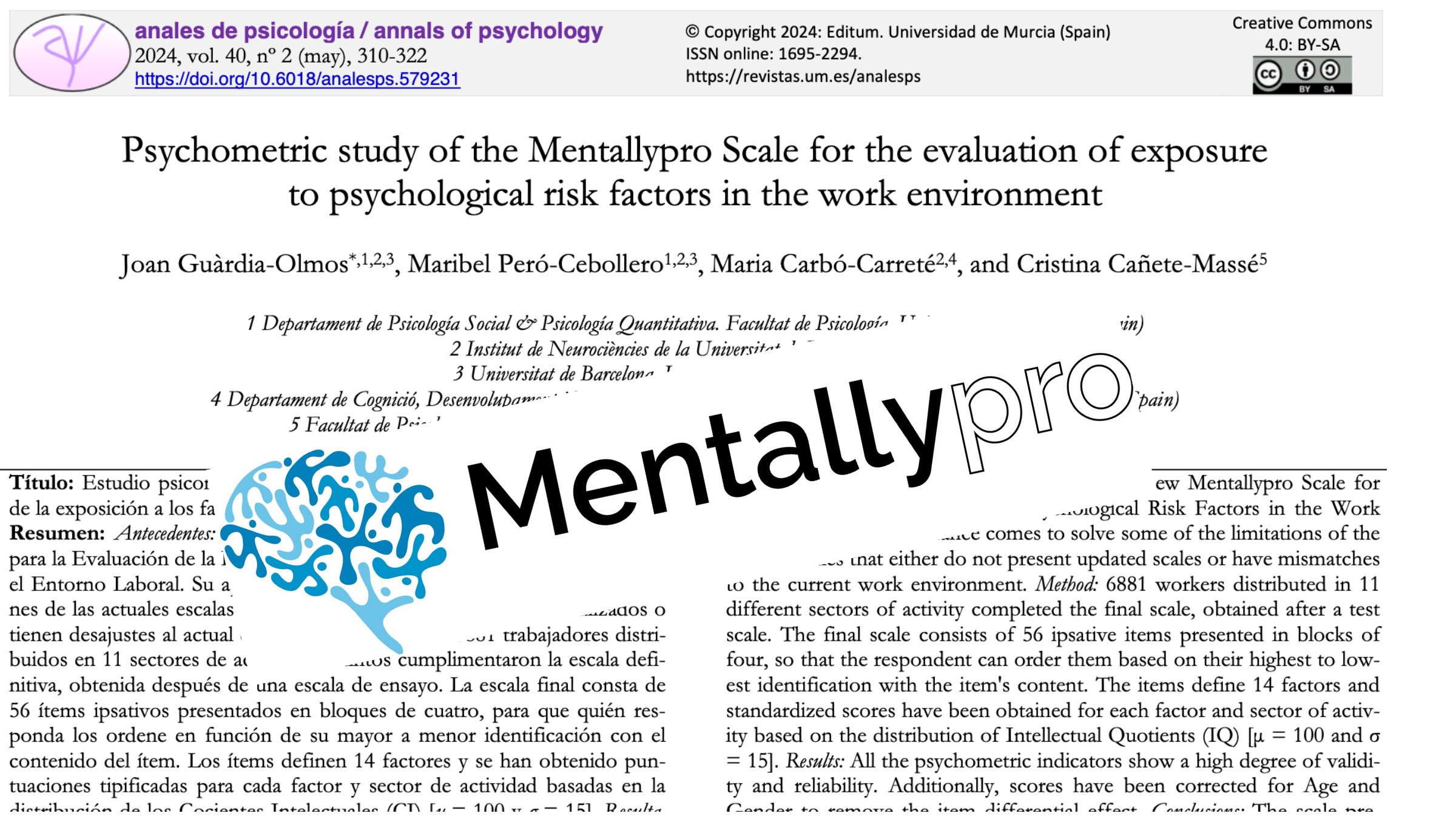 El paper Psychometric study of the Mentallypro Scale for the evaluation of exposureto psychological risk factors in the work environment, publicado por la prestigiosa revista científica Annals of Psychology, recoge los diferentes motivos por los que «su aparición viene a resolver algunas de las limitaciones de las actuales escalas que o bien no presentan baremos actualizados o tienen desajustes al actual entorno laboral«.