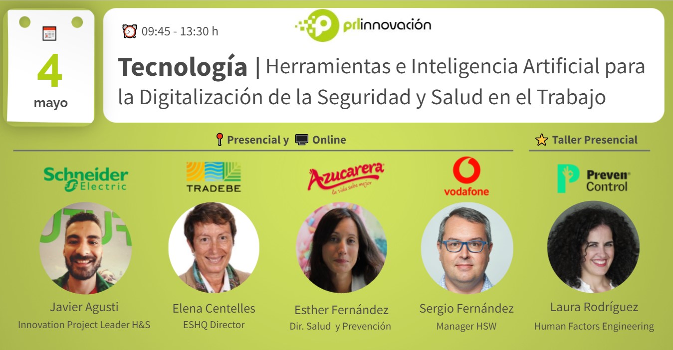 El próximo miércoles 4 de mayo tendrá lugar la jornada «Tecnología | Herramientas e Inteligencia Artificial para la Digitalización de la Seguridad y Salud en el Trabajo«, en la que se expondrán experiencias, aprendizajes y herramientas enfocadas a la digitalización de: